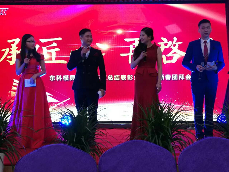 1月28日晚,华厅内,张灯结彩,一派欢乐喜庆的气氛,东科模具2016年终总结表彰暨2017新春团拜会正在此隆重举行。公司总经理范晓斌发表了热情洋溢的致辞。全体公司领导、中层干部、班组骨干代表以及东科的合作伙伴等210余人齐聚一堂,共话友情,共叙未来。